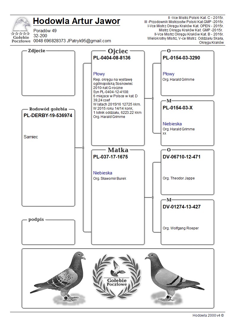 | 50% HARALD GRIMME / 50% SŁAWOMIR BUREK | SYN OJCA GOŁĘBNIKA "PŁOWY 8136" ORG. HARALD GRIMME - OJCIEC/DZIADEK WIELU CZOŁOWYCH LOTNIKÓW! |