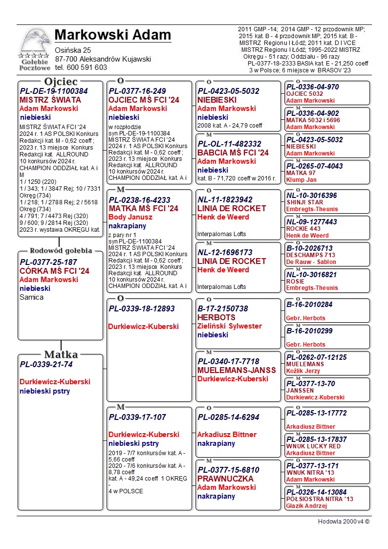 CÓRKA WSPANIAŁEGO LOTNIKA “1100384" - NAJLEPSZY GOŁĄB ŚWIATA FCI KAT. MARATON 2024 - 0,62 COEFF. (2X PIERWSZY KONKURS W REJONIE !!) / W KARIERZE LOTOWEJ ZDOBYŁ M.IN.: 1, 1, 1, 1, 1, 4, 5, 5, 5, 6, 9, 9, 9.. / 1 AS ODDZIAŁU 2022 - KAT. C / 1 AS ODDZIAŁU 2023 - KAT. B / 1 AS ODDZIAŁU 2024 - KAT. A / 1 AS ODDZIAŁU 2024 - KAT. M / 13 LOTNIK POLSKI KAT. ALLROUND / CÓRKA SUPER SAMICY “74” ORG. DURKIEWICZ P. & KUBERSKI A. (CÓRKA 4 LOTNICZKI POLSTKI KAT. SPORT A)