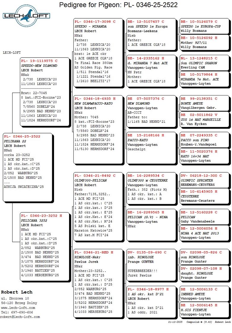 Córka najlepszej lotniczki hodowli w sezonie 2025 → PELICANA 3252