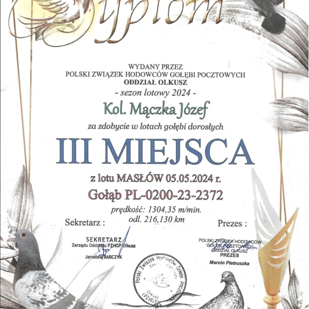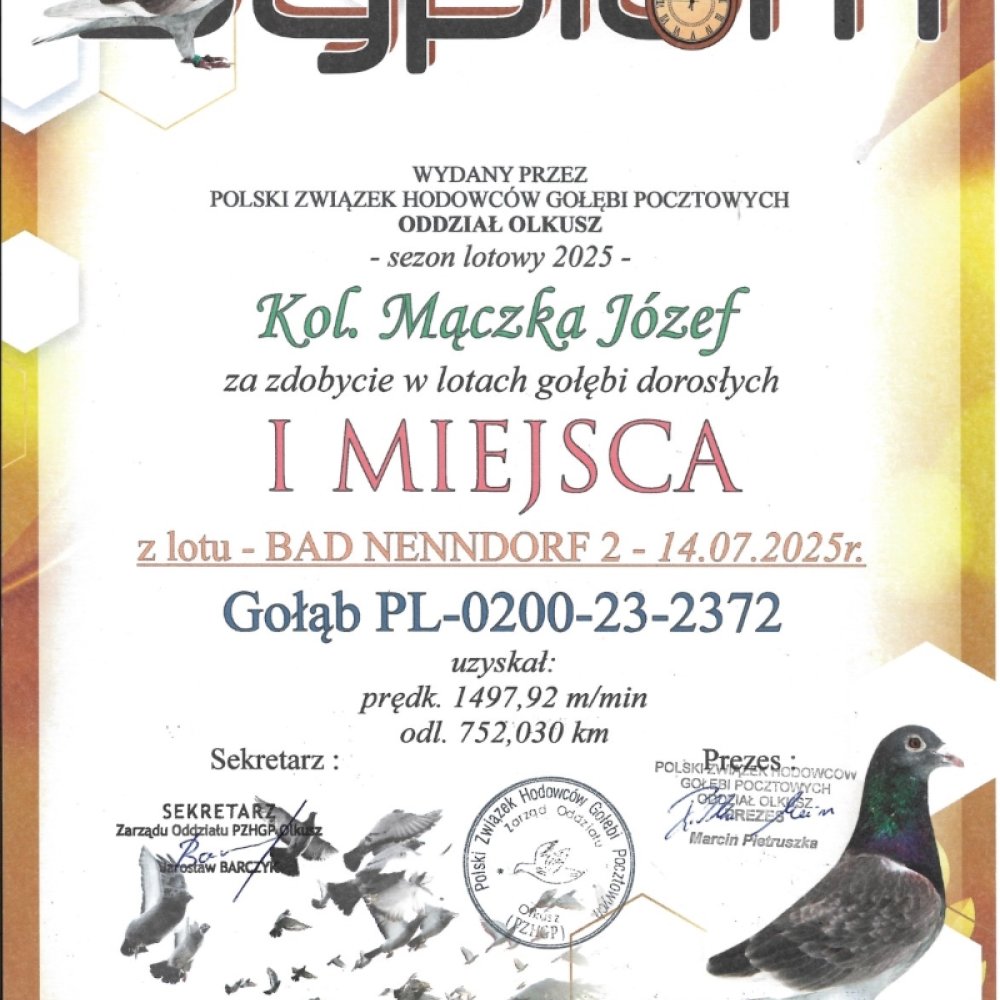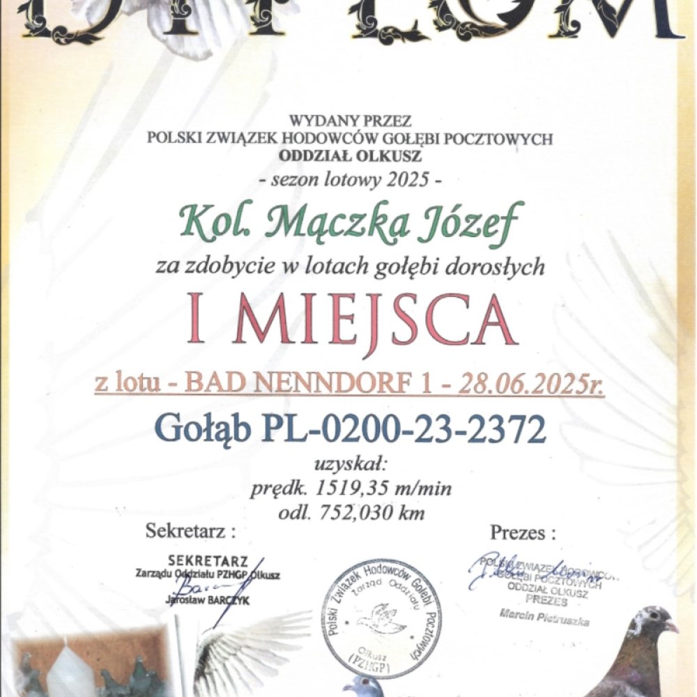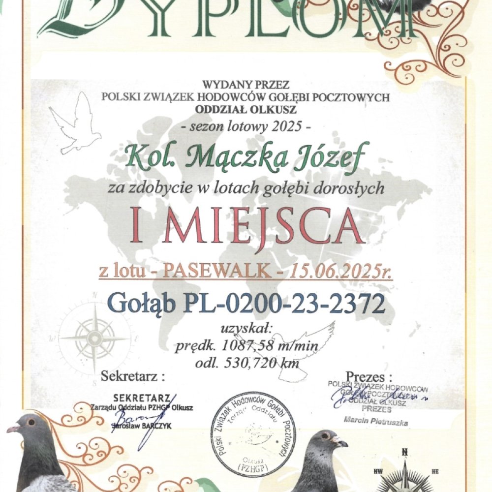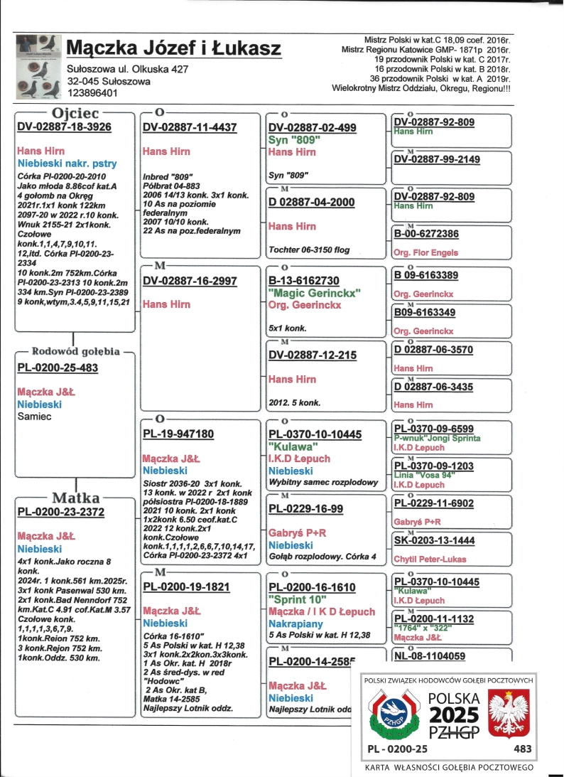 SYN WSPANIAŁEJ LOTNICZKI “MILKA 2372” - CZOŁOWA LOTNICZKA POLSKI 2025 KAT. SPORT I / 1 AS OKRĘGU ŚLĄSK WSCHÓD 2025 KAT. SPORT I 4,91 COEFF. / 1 AS OKRĘGU 2025 - KAT. MARATON 3,57 COEFF. / 1 AS OKRĘGU 2025 - KAT. C 4,91 COEFF. / W KARIERZE ZDOBYŁA 4X PIERWSZY KONKURS (DWULATKA!) W SEZONIE 2025 ZDOBYŁA 3X PIERWSZY KONKURS (2X 750 / 1 X 530KM) / JAKO ROCZNA 1 NA ODDZIAŁ Z 561KM ORAZ 3 NA ODDZIAŁ Z 216KM