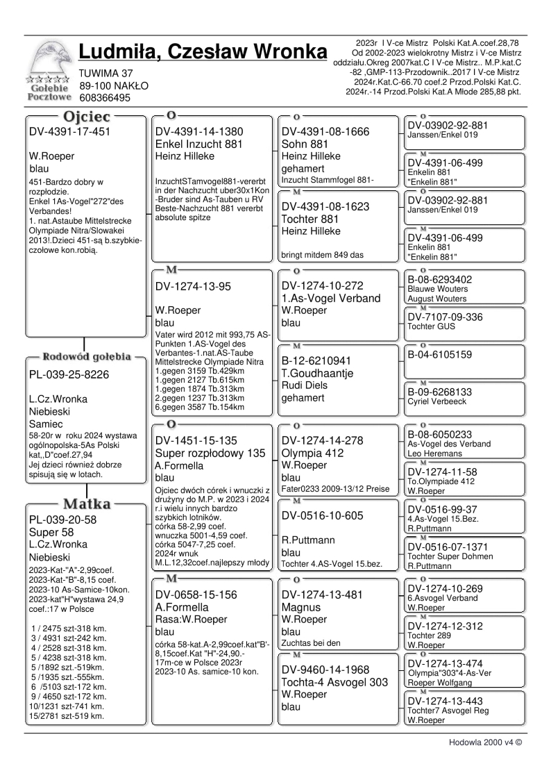 SYN WYBITNEJ LOTNICZKI HODOWLI “58” - 5 AS POLSKI KAT. SPORT D 27,94 COEFF. (KATOWICE 2025) / 1 AS OKRĘGU BYDGOSZCZ KAT. SPORT D / 17 AS POLSKI 2023 - KAT. SPORT H / W DRUŻYNIE I V-CE MISTRZA POLSKI 2023 KAT. A 2,99 COEFF. / W DRUŻYNIE 2 PRZODOWNIKA POLSKI 2024 KAT. C 15,89 COEFF. / W KARIERZE LOTOWEJ ZDOBYŁA M.IN.: 1, 3, 4, 5, 5, 5, 6, 9, 10, 15, 17, 23.. !! | WNUK BAZOWEGO ROZPŁODOWCA “135” ORG. A. FORMELLA - DWIE JEGO CÓRKI ORAZ WNUCZKA W DRUŻYNIE I V-CE MISTRZA POLSKI 2023