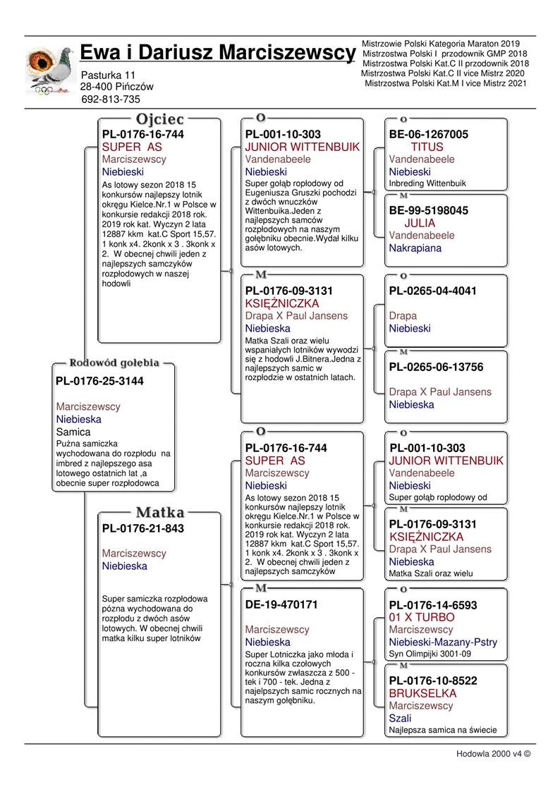 CÓRKA / INBRED WYBITNEGO LOTNIKA HODOWLI “SUPER AS 744” (PAROWANIE NA CÓRKE 843) - NAJLEPSZY GOŁĄB POLSKI KAT. SPORT WYCZYN 12 887 K/KM / NAJLEPSZY LOTNIK POLSKI 2018R - 15/15 KONK. / KAT. SPORT C 15,57 COEFF. / NAJLEPSZE KONKURSY “744” → 1, 1, 1, 1, 2, 2, 2, 3, 3.. !! | WNUCZKA WSPANIAŁEJ SAMICY ROZPŁODOWEJ “KSIĘŻNICZKA 3131” - JEDNA Z NAJLEPSZYCH SAMIC ROZPŁODOWYCH HODOWLI - MATKA M.IN.: SZALI !!