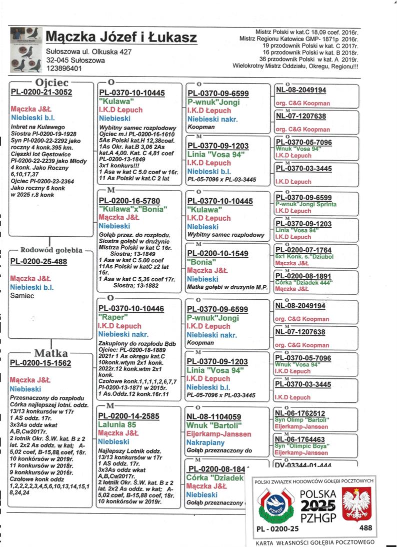 BRAT SUPER LOTNIKÓW → “2389” - W SEZONIE 2025 9KONK. KAT. A - 17,34 / KAT. B - 15,33 → “2334” - W SEZONIE 2025 10KONK W TYM 2 NA ODDZIAŁ Z 752KM → “2313” - W SEZONIE 2025 10KONK - KAT. A 10,75 COEFF. | WNUK DWÓCH WSPANIAŁYCH GOŁĘBI HODOWLI “SPRINT 10” (5 AS POLSKI KAT. SPORT H) / “LALUNIA 85 …