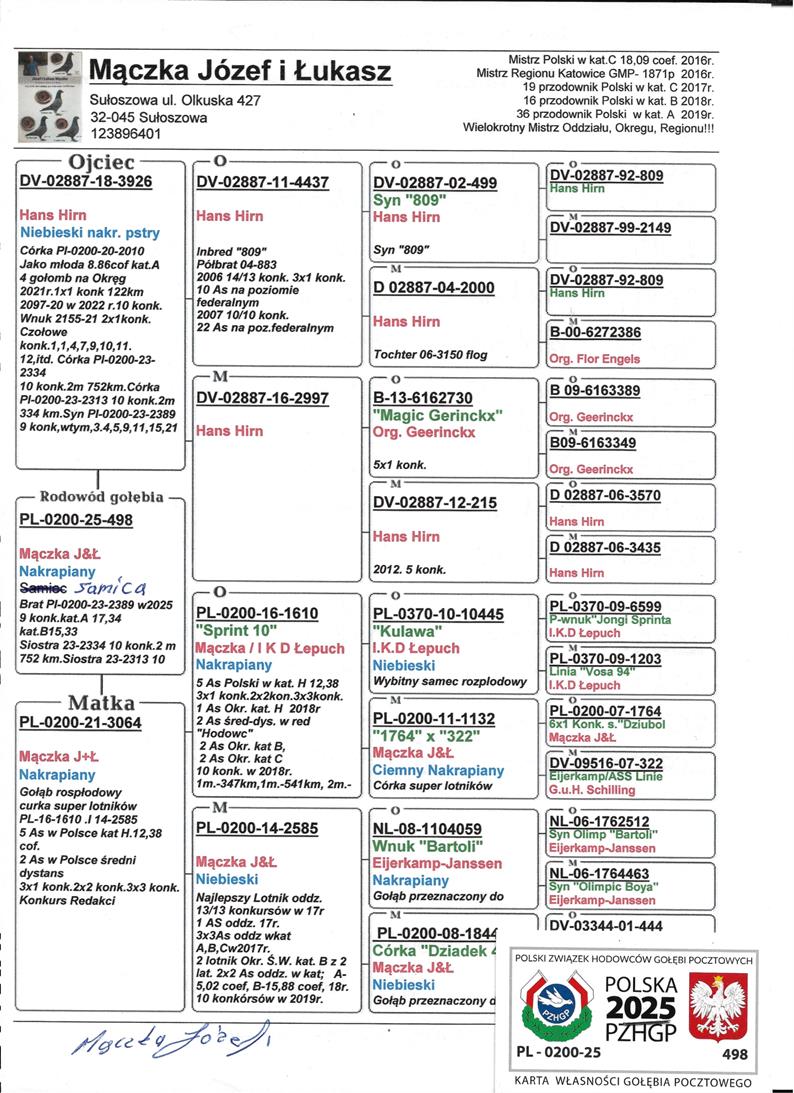 SYN WSPANIAŁEJ LOTNICZKI “MILKA 2372” - CZOŁOWA LOTNICZKA POLSKI 2025 KAT. SPORT I / 1 AS OKRĘGU ŚLĄSK WSCHÓD 2025 KAT. SPORT I 4,91 COEFF. / 1 AS OKRĘGU 2025 - KAT. MARATON 3,57 COEFF. / 1 AS OKRĘGU 2025 - KAT. C 4,91 COEFF. / W KARIERZE ZDOBYŁA 4X PIERWSZY KONKURS (DWULATKA!) W SEZONIE 2025 ZDOB …