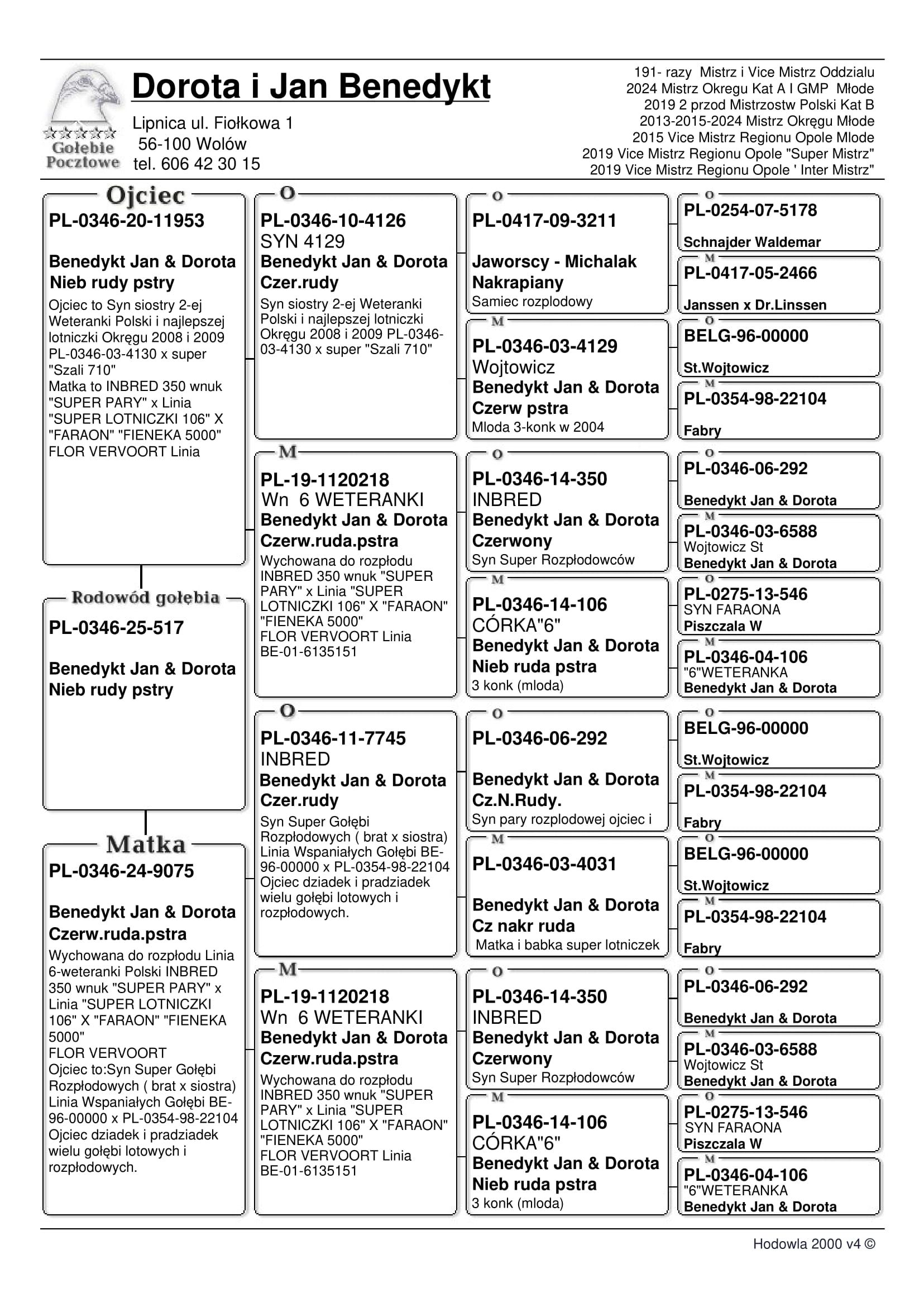 INBRED SUPER SAMICY ROZPŁODOWEJ “RUDA 218” (SYN X CÓRKA) - SAMICA TA JEST WNUCZKĄ BAZOWEGO SAMCA HODOWLI “FARAON 546” ORAZ WYBITNEJ LOTNICZKI HODOWLI “WETERANKA 106” - W KARIERZE LOTOWEJ ZDOBYŁA 75 KONKURSÓW !! | WNUK SUPER SAMCA ROZPŁODOWEGO “11-7745” - OJCIEC I DZIADEK WIELU WSPANIAŁYCH GOŁĘBI W HODOWLI (INBRED “BE96 X 22104” - SYN X CÓRKA !!)