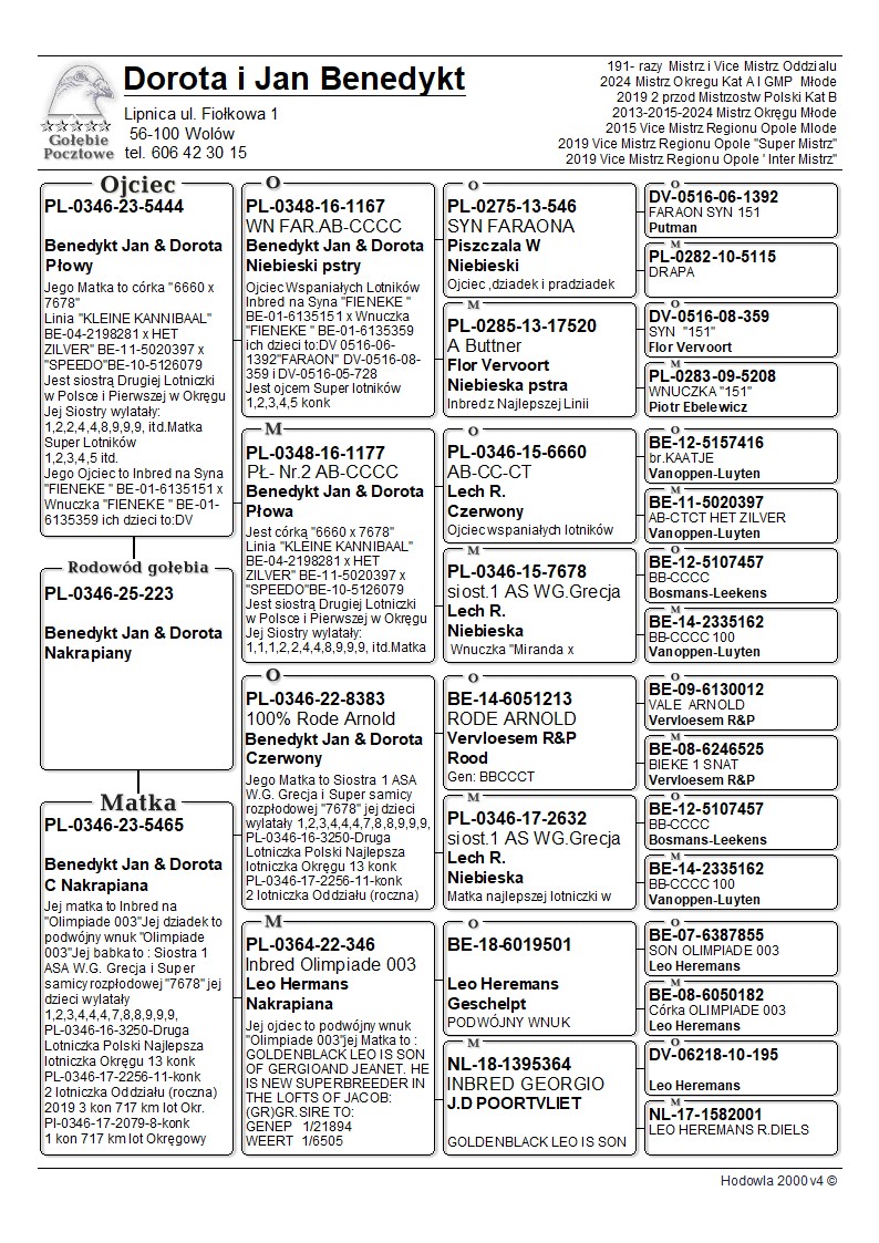 Hodowla z Oddziału 0346 Brzeg Dolny.191 - krotny Mistrz i Vice Mistrz oddziału Brzeg Dolny 32 - krotny Mistrz i Vice Mistrz Okręgu Wrocław Trzeci Zespół Lotników Polski HGP 2022 2 Przodownik Polski -…