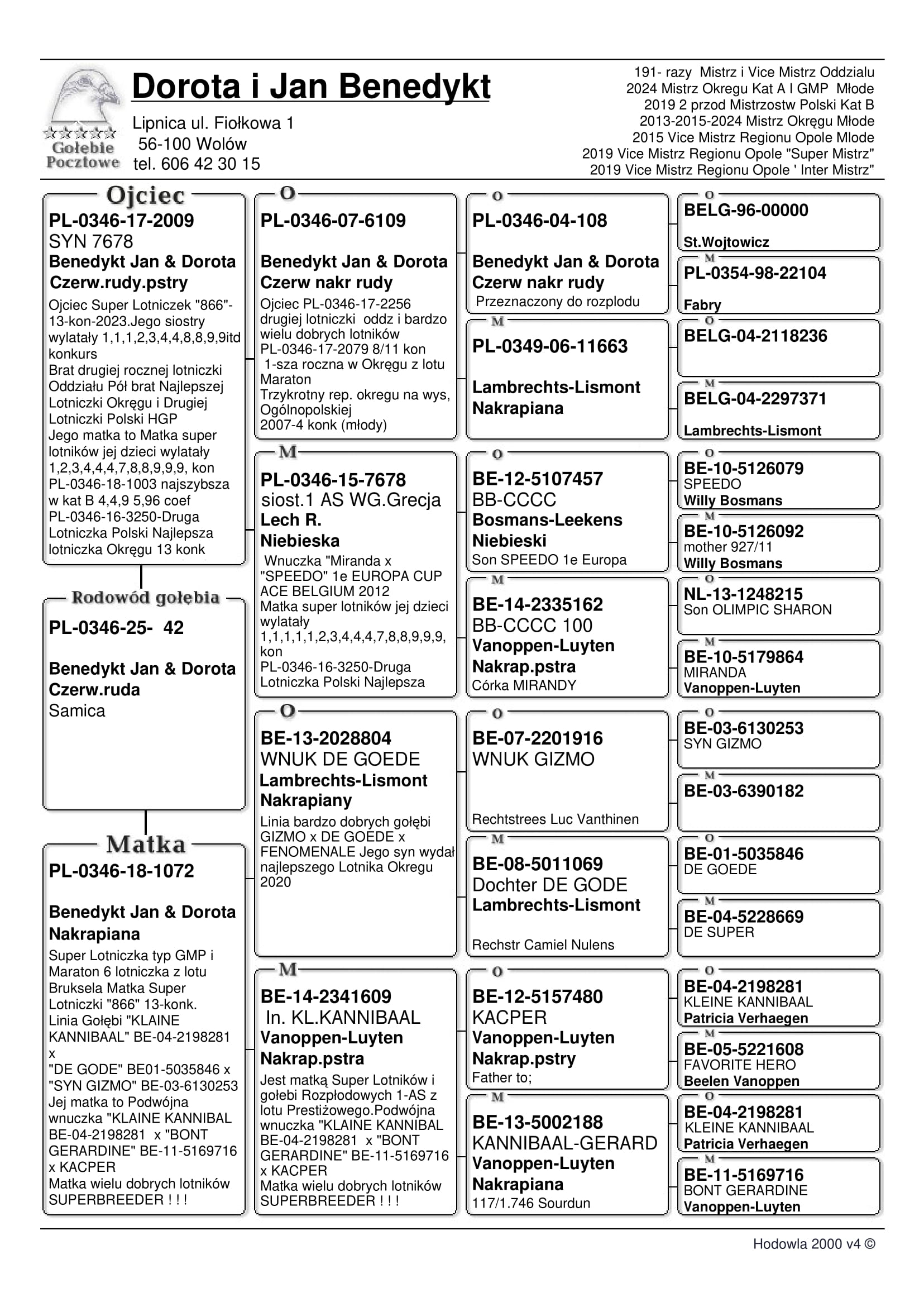 Hodowla z Oddziału 0346 Brzeg Dolny.191 - krotny Mistrz i Vice Mistrz oddziału Brzeg Dolny 32 - krotny Mistrz i Vice Mistrz Okręgu Wrocław Trzeci Zespół Lotników Polski HGP 2022 2 Przodownik Polski -…