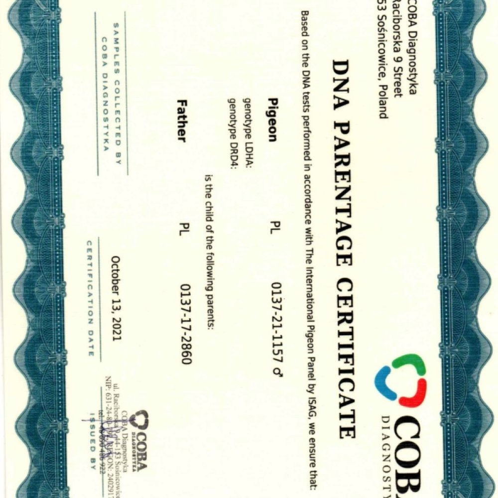 WNUK WSPANIAŁEGO LOTNIKA "BUGATTI 2860" - 1 AS POLSKI KAT. SPORT G - 5,608COEFF. M.IN.: 1, 1, 4, 6, 14.. | WNUK WYBITNEGO SPRINTERA "9018" ORG. KRZYSZTOF KOKOT - NAJLEPSZY GOŁĄB POLSKI 2023/24 - KAT. SPORT A - 20,64COEFF. - M.IN.: 1, 1, 4, 5, 9, 9, 10, 14, 15.. | WNUK WYBITNEJ LOTNICZKI "43" - 1AS …