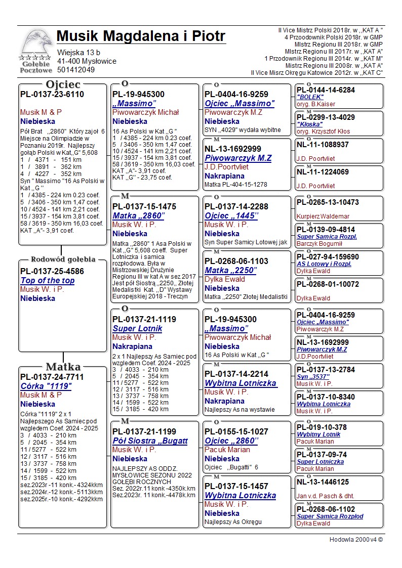 WNUK WSPANIAŁEGO LOTNIKA "BUGATTI 2860" - 1 AS POLSKI KAT. SPORT G - 5,608COEFF. M.IN.: 1, 1, 4, 6, 14.. | WNUK WYBITNEGO SPRINTERA "9018" ORG. KRZYSZTOF KOKOT - NAJLEPSZY GOŁĄB POLSKI 2023/24 - KAT. SPORT A - 20,64COEFF. - M.IN.: 1, 1, 4, 5, 9, 9, 10, 14, 15.. | WNUK WYBITNEJ LOTNICZKI "43" - 1AS …