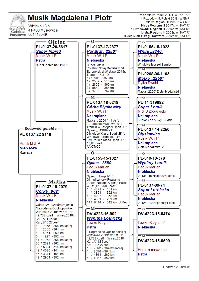 WNUK WSPANIAŁEGO LOTNIKA "BUGATTI 2860" - 1 AS POLSKI KAT. SPORT G - 5,608COEFF. M.IN.: 1, 1, 4, 6, 14.. | WNUK WYBITNEGO SPRINTERA "9018" ORG. KRZYSZTOF KOKOT - NAJLEPSZY GOŁĄB POLSKI 2023/24 - KAT. SPORT A - 20,64COEFF. - M.IN.: 1, 1, 4, 5, 9, 9, 10, 14, 15.. | WNUK WYBITNEJ LOTNICZKI "43" - 1AS …