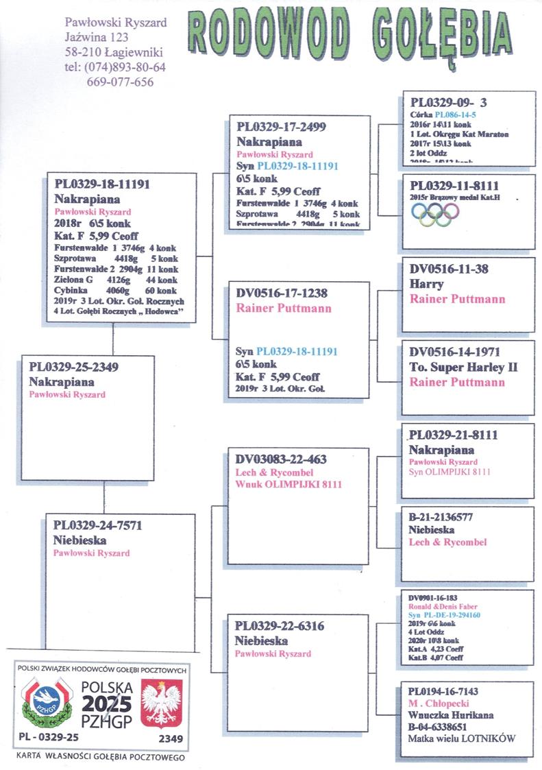 WYHODOWANY W POKREWIEŃSTWIE WYBITNEJ LOTNICZKI - OLIMPIJKI 8111 → BRĄZOWY MEDAL 2015 - KAT. SPORT H (WNUK X WNUCZKA) | DZIECKO 5818 → 3 MŁODA LOTNICZKA ODDZIAŁU 2020 | WNUCZKA SUPER LOTNIKA 1427 → JAKO ROCZNY 12 KONK. (1 LOTNIK OKRĘGU) / W SEZONIE 2018 - 15/15KONK. (1 LOTNIK POLSKI KAT. ALLROUND) …