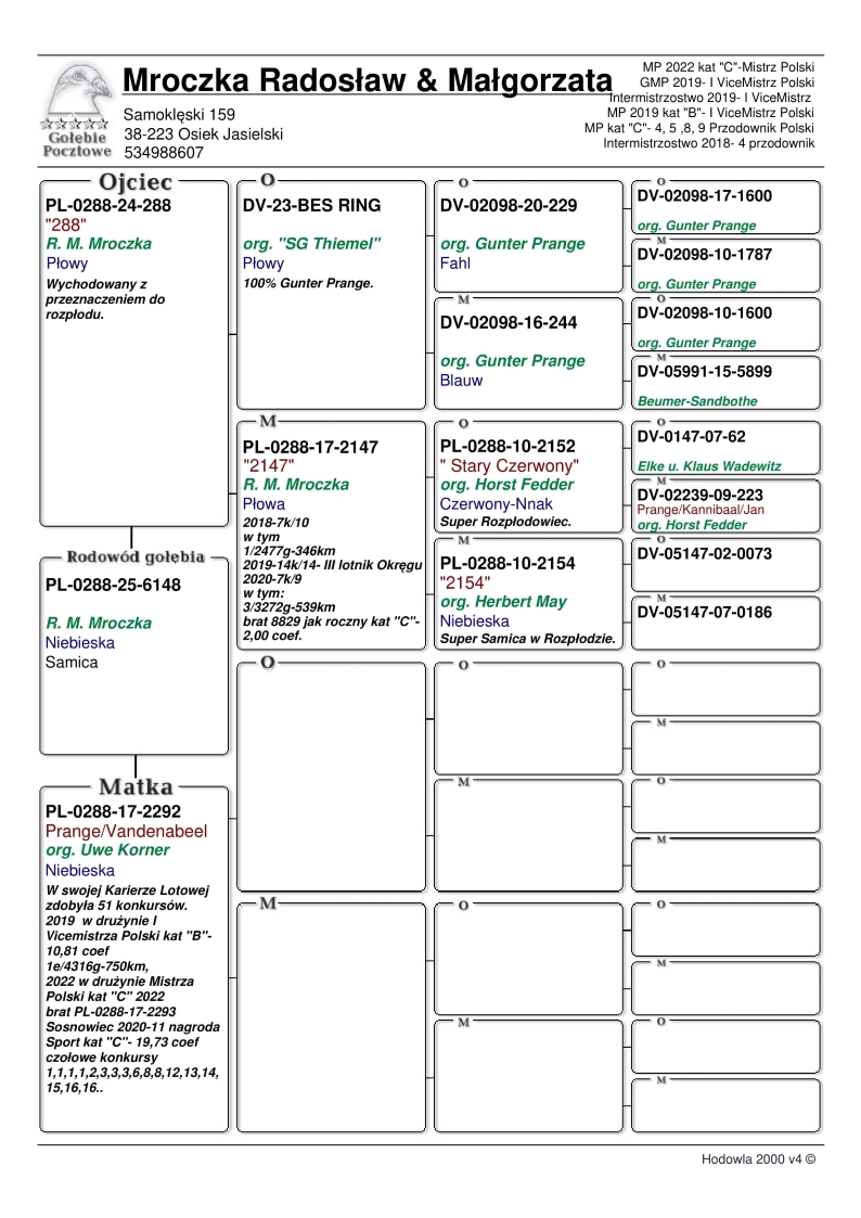 CÓRKA WYBITNEJ LOTNICZKI HODOWLI 2292 → M.IN.: 1, 1, 1, 1, 2, 3, 3, 3, 6, 8, 8, 12, 13, 14, 15, 16, 16..11 AS POLSKI KAT. SPORT C (SOSNOWIEC 2020R) / W DRUŻYNIE I V-CE MISTRZA POLSKI 2019 KAT. B / W DRUŻYNIE MISTRZA POLSKI 2022 - KAT. C | WNUCZKA WSPANIAŁEJ LOTNICZKI “PŁOWA 2147” → W SEZONIE 2019 - 14/14 KONK. (3 LOTNIK OKRĘGU) M.IN.: 1/ 2477 SZT - 346KM / 3/ 3272 SZT - 539KM → JEJ BRAT “8829” JAKO ROCZNY KAT. C - 2,00 COEFF. !!