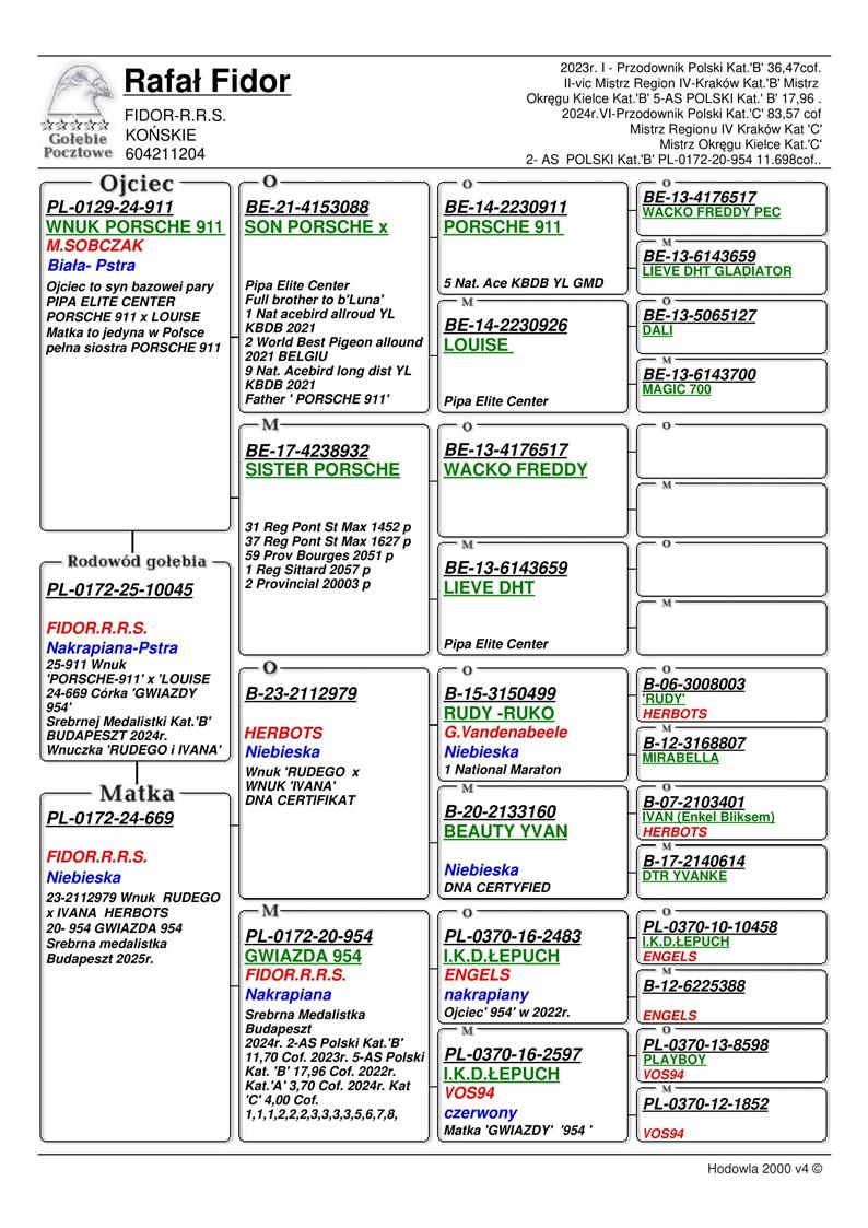 WNUK NAJLEPSZEJ LOTNICZKI HODOWLI “GWIAZDA 954” - SREBRNY MEDAL SPARTAKIADA BUDAPESZT 2025 / 2AS POLSKI KAT. SPORT B -11,70COEFF. / 5AS POLSKI KAT. SPORT B 2022/23 - 17,96COEFF. / "GWIAZDA 954" ZDOBYŁA 14 KONKURSÓW W TOP 8 ODDZIAŁU - M.IN.: 1, 1, 1, 2, 2, 2, 3, 3, 3, 3, 5, 6, 7, 8.. | DZIECKO ROZPŁODOWCA “911” ORG. MARCIN SOBCZAK - WNUK/INBRED PORSCHE 911” 5 NAT. ACE KBDB YL GMD )(SYN X SIOSTRA)