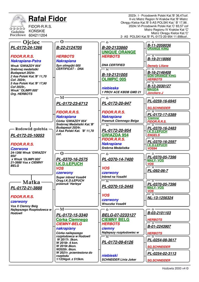 DZIECKO ROZPŁODOWCA “1266” → WNUK NAJLEPSZEJ LOTNICZKI HODOWLI “GWIAZDA 954” - SREBRNY MEDAL SPARTAKIADA BUDAPESZT 2025 / 2AS POLSKI KAT. SPORT B -11,70COEFF. / 5AS POLSKI KAT. SPORT B 2022/23 - 17,96COEFF. / ZDOBYŁA 14 KONKURSÓW W TOP 8 ODDZIAŁU - M.IN.: 1, 1, 1, 2, 2, 2, 3, 3, 3, 3, 5, 6, 7, 8... | DZIECKO SAMICY “3888” - WNUCZKA “CIEMNY BELG” HERBOTS - NAJLEPSZY SAMIEC ROZPŁODOWY HODOWLI