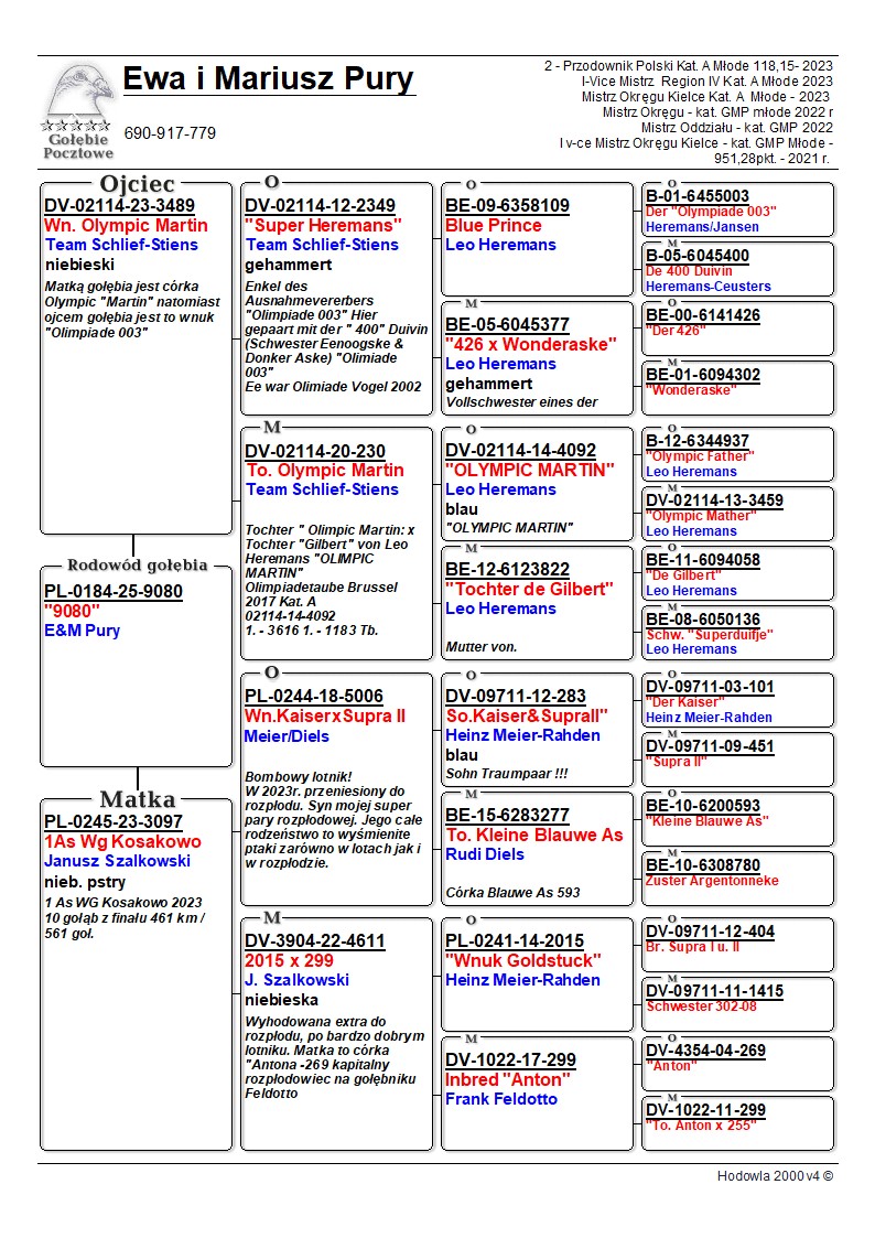 INBRED "OLYMPIC MARTIN" LEO HEREMANS (WNUK X WNUCZKA) | DZIECKO SUPER ROZPŁODOWCA "3445" ORG. TEAM SCHLIEF - STIENS (OLYMPIADE 003 / OLYMPIC MARTIN) - SAMCZYK TEN JEST OJCEM M.IN.: "6136" - NAJLEPSZY MŁODY LOTNIK ODDZIAŁU 2025R | DZIECKO SAMICY ROZPŁODOWEJ "1649" ORG. TEAM SCHLIEF - STIENS -> J …