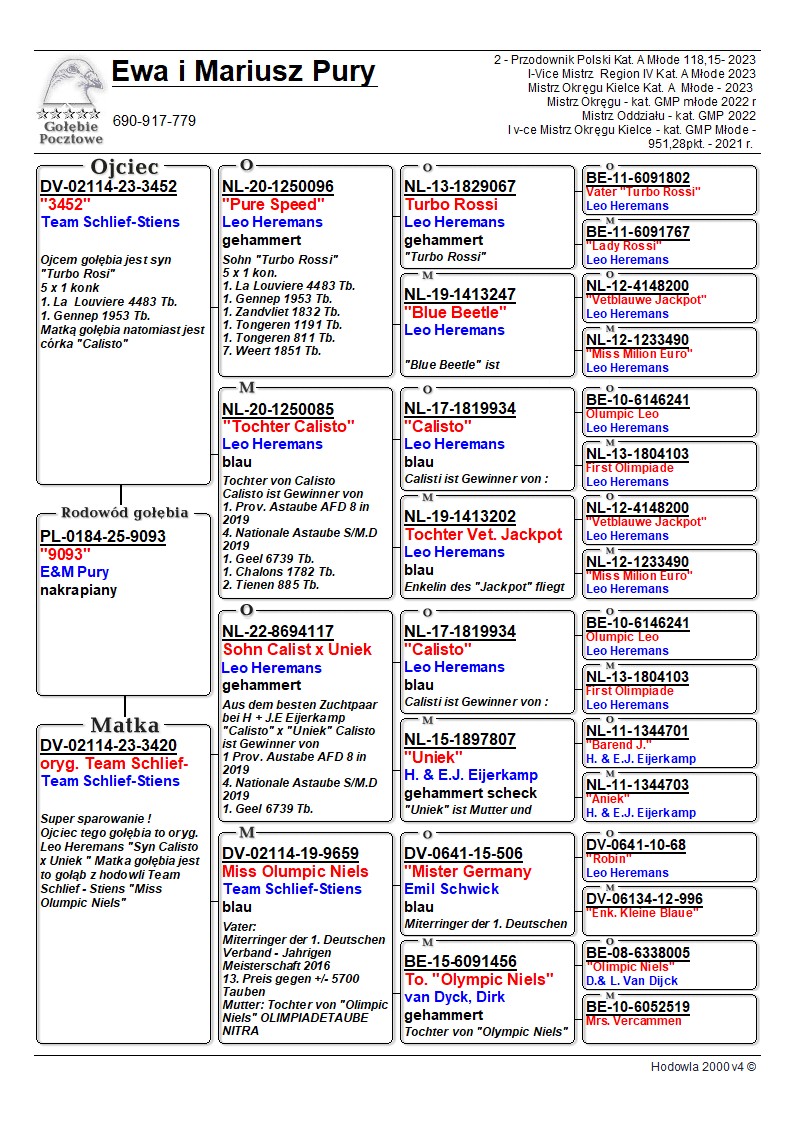 100% TEAM SCHLIEF STIENS - INBRED "CALISTO" LEO HEREMANS | DZIECKO ROZPŁODOWCA "3452" -> JEST ON WNUKIEM DWÓCH SUPER LOTNIKÓW "TURBO ROSSI" - 5X 1 KONKURS ORAZ "CALISTO" LEO HEREMANS !! | DZIECKO SAMICY ROZPŁODOWEJ "3420" - WNUCZKA "CALISTO" LEO HEREMANS | WNUCZKA SAMICY ROZPŁODOWEJ "9659" - JEST ONA WNUCZKĄ OLIMPIJCZYKA "OLIMPIC NIELS" ORG. D. & L. VAN DIJCK