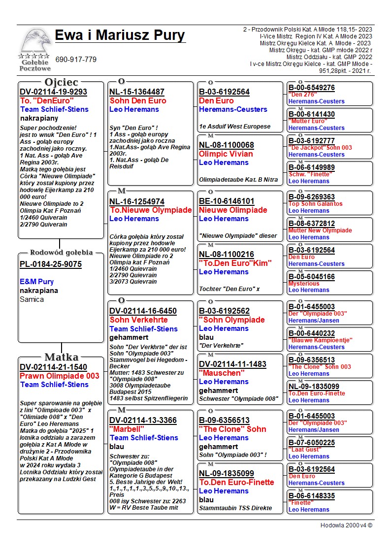 INBRED "OLYMPIC MARTIN" LEO HEREMANS (WNUK X WNUCZKA) | DZIECKO SUPER ROZPŁODOWCA "3445" ORG. TEAM SCHLIEF - STIENS (OLYMPIADE 003 / OLYMPIC MARTIN) - SAMCZYK TEN JEST OJCEM M.IN.: "6136" - NAJLEPSZY MŁODY LOTNIK ODDZIAŁU 2025R | DZIECKO SAMICY ROZPŁODOWEJ "1649" ORG. TEAM SCHLIEF - STIENS -> J …