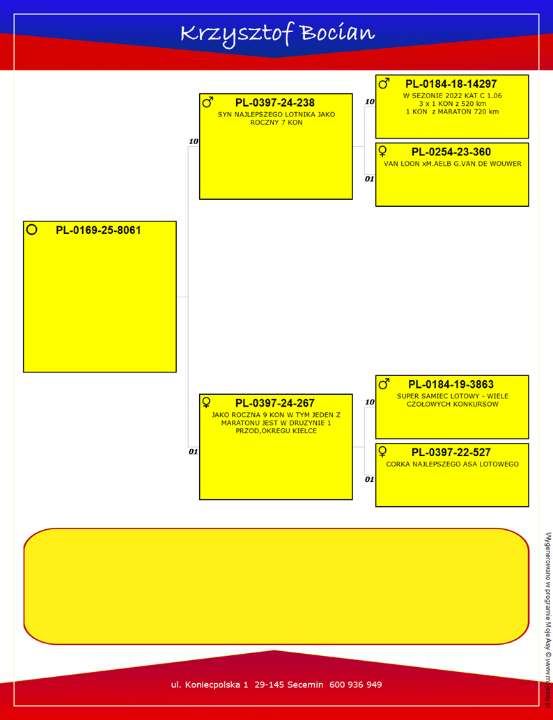 CÓRKA SUPER LOTNIKA “202” → JAKO MŁODY 3X TOP 30 W ODDZIALE / JAKO ROCZNY 6 KONK. M.IN.: 4, 7, 13, 27, 35.. | CÓRKA SUPER LOTNICZKI “300” (CÓRKA ASA LOTOWEGO 14297) - JAKO ROCZNA W 2025R ZDOBYŁA 9 KONK. (5 KONK W TOP 100 ODDZIAŁU) | WYHODOWANA W POKREWIEŃSTWIE BAZOWEJ LINII HODOWLI (JEST WNUCZKĄ A …