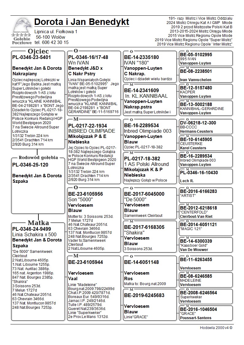 Hodowla z Oddziału 0346 Brzeg Dolny.191 - krotny Mistrz i Vice Mistrz oddziału Brzeg Dolny 32 - krotny Mistrz i Vice Mistrz Okręgu Wrocław Trzeci Zespół Lotników Polski HGP 2022 2 Przodownik Polski -…