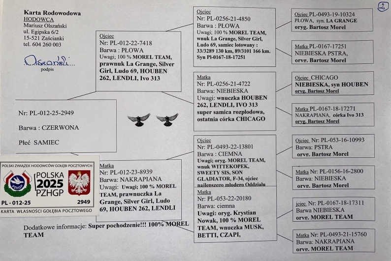 100% MOREL TEAM - WNUK SAMCA ROZPŁODOWEGO “13801" ORG. MOREL TEAM (WNUK ‘WITTEKOPEK’) - JEST ON M.IN. OJCEM NAJLEPSZEGO MŁODEGO LOTNIKA ODDZIAŁU BIAŁYSTOK KAT. A | WNUK SAMICY ROZPŁODOWEJ “20180” ORG. KRYSTIAN NOWAK (100% MOREL TEAM) - WNUCZKA “MUSK” / “BETTI” / “CZAPI” | SYN SAMICY ROZPŁODOWEJ “6 …