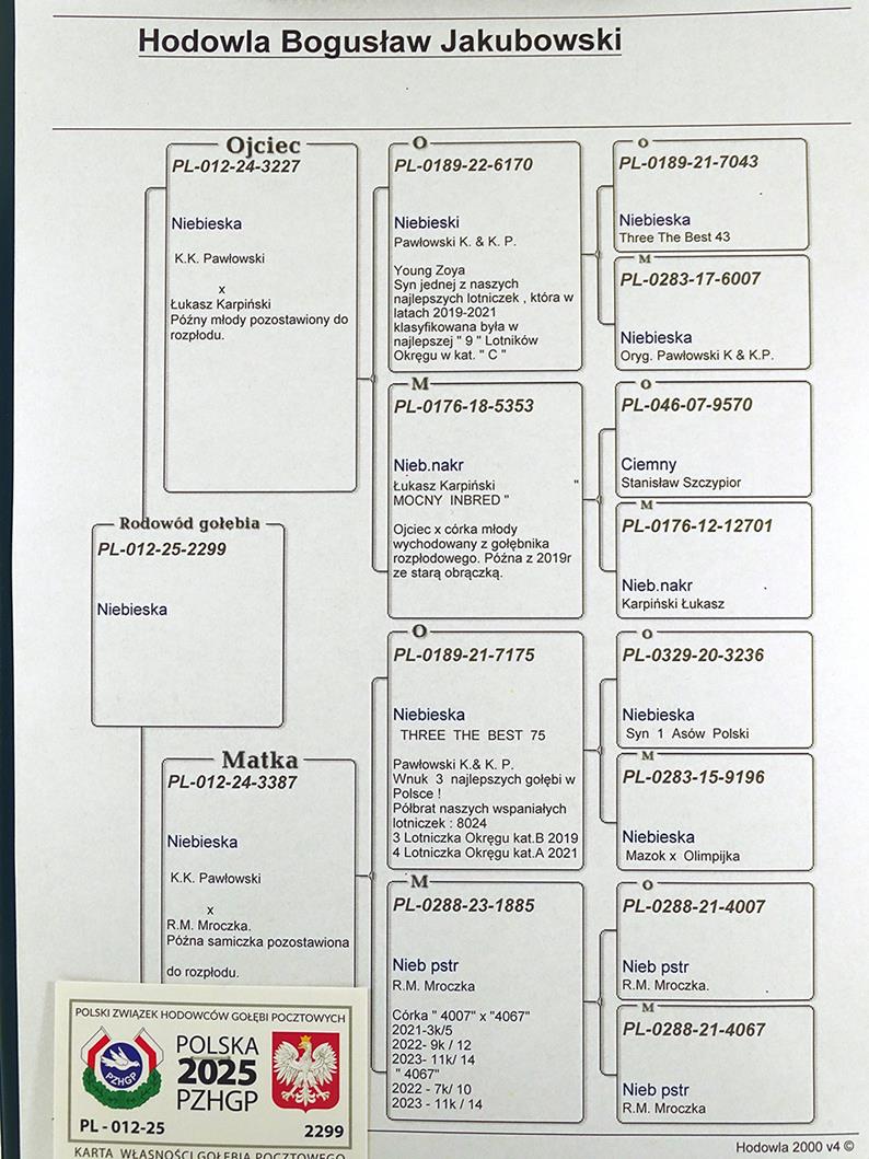 INBRED SUPER LOTNIKA I ROZPŁODOWCA '2152" ORG. RYSZARD PAWŁOWSKI (SYN X WNUCZKA) - 1 AS POLSKI ALLROUND / 2 AS POLSKI KAT. DŁUGI DYSTANS / 1 LOTNIK ODDZIAŁU 2019R - 14/15 KONK. / 1 LOTNIK OKRĘGU WAŁBRZYCH 2019 | CÓRKA SAMICY ROZPŁODOWEJ "7176" ORG. PAWŁOWSKI K. & K. P. - JEST ONA WNUCZKĄ TRZEC …