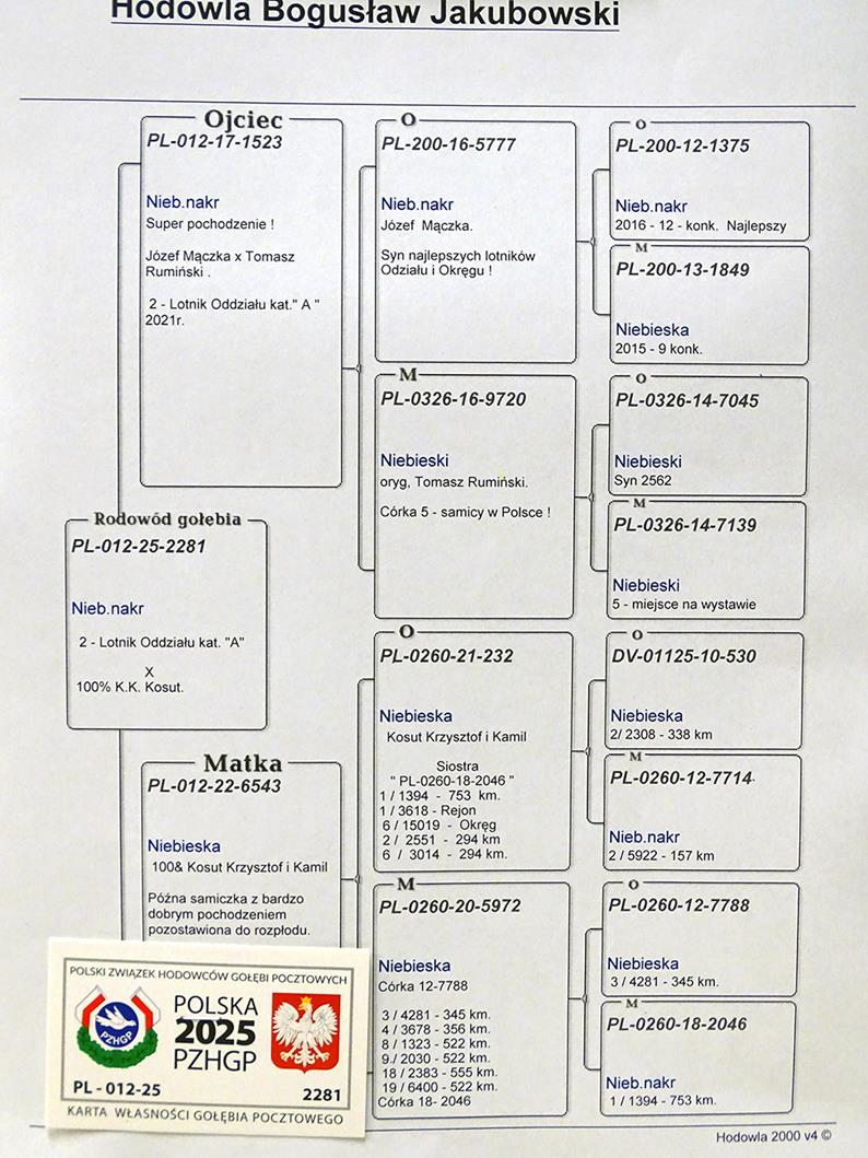 INBRED SUPER LOTNIKA I ROZPŁODOWCA '2152" ORG. RYSZARD PAWŁOWSKI (SYN X WNUCZKA) - 1 AS POLSKI ALLROUND / 2 AS POLSKI KAT. DŁUGI DYSTANS / 1 LOTNIK ODDZIAŁU 2019R - 14/15 KONK. / 1 LOTNIK OKRĘGU WAŁBRZYCH 2019 | CÓRKA SAMICY ROZPŁODOWEJ "7176" ORG. PAWŁOWSKI K. & K. P. - JEST ONA WNUCZKĄ TRZEC …
