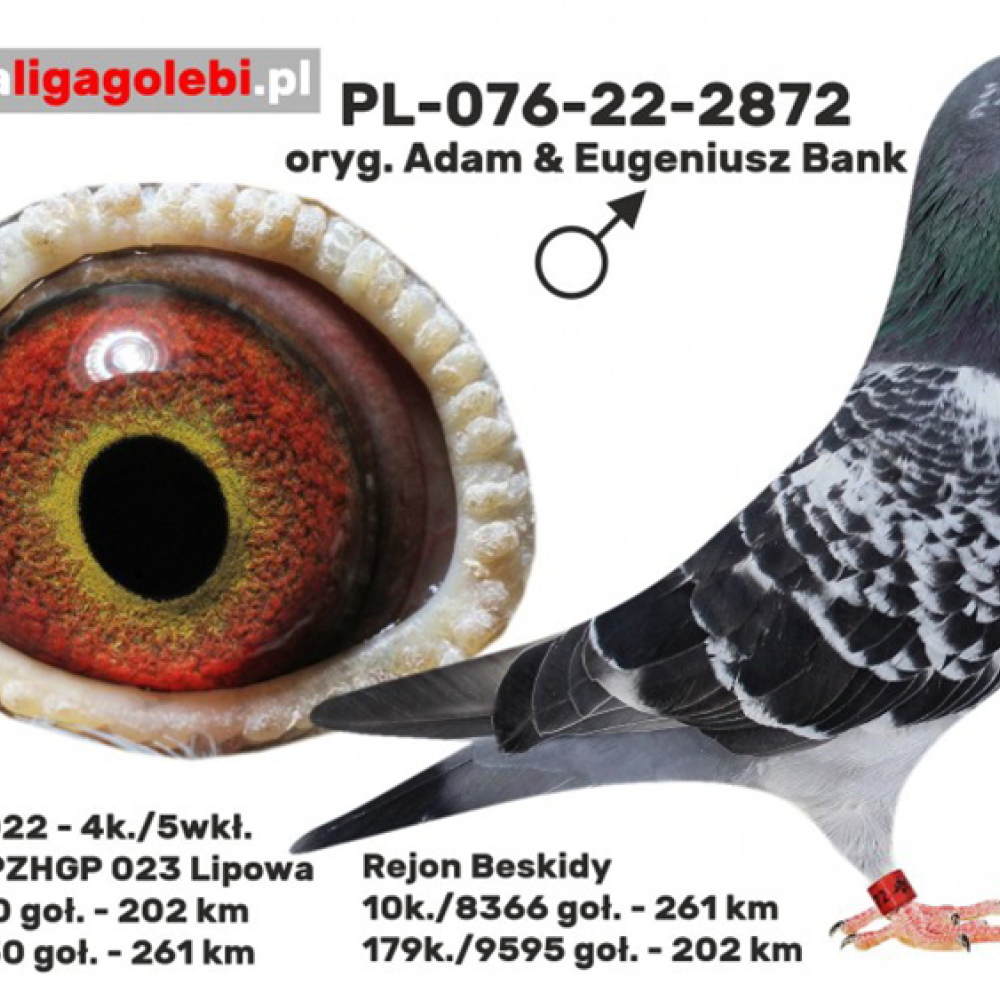DZIECKO SAMCA “2872” ORG. ADAM & EUGENIUSZ BANK → LOTOWANY JAKO MŁODY 4/5KONK. M.IN.: 5, 10, 10.. (WNUK ‘DESPERADO’ X ‘VIKTORIA’) | DZIECKO SAMICY ROZPŁODOWEJ “6224” ORG. TOMASZ KAJDZIK | WNUK SUPER LOTNIKA “369” ORG. TOMASZ KAJDZIK - NAJLEPSZY DOROSŁY SAMIEC ODDZIAŁU ZAWIERCIE 2015R - 12 KONK. / 1 AS OKRĘGU KAT. SPORT H 35,91 COEFF. M.IN.: 1, 3, 3, 4, 7, 9, 15, 22..