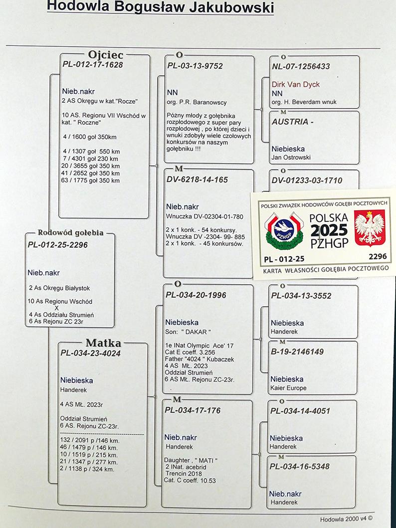 INBRED SUPER LOTNIKA I ROZPŁODOWCA '2152" ORG. RYSZARD PAWŁOWSKI (SYN X WNUCZKA) - 1 AS POLSKI ALLROUND / 2 AS POLSKI KAT. DŁUGI DYSTANS / 1 LOTNIK ODDZIAŁU 2019R - 14/15 KONK. / 1 LOTNIK OKRĘGU WAŁBRZYCH 2019 | CÓRKA SAMICY ROZPŁODOWEJ "7176" ORG. PAWŁOWSKI K. & K. P. - JEST ONA WNUCZKĄ TRZEC …