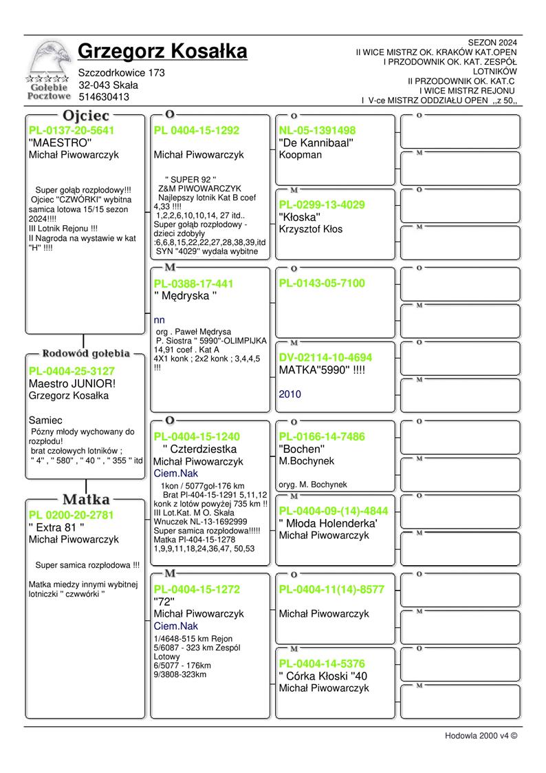 BRAT WYBITNEJ LOTNICZKI HODOWLI ‘CZWÓRKA’ - 15/15 KONKURSÓW W SEZONIE 2024 (W TYM M.IN.: 1, 3, 7, 8, 8..) / NAJLEPSZA LOTNICZKA ODDZIAŁU 2024R / 2 AS OKRĘGU KRAKÓW KAT. SPORT H / 3 AS REJONU LOTOWEGO (4 ODDZIAŁY) / 1 AS ODDZIAŁU 2024 KAT. C ! | BRAT “355” - JAKO ROCZNY 1/ 9062SZT - 518KM | BRAT “580” JAKO ROCZNY 1/ 1906SZT - 314KM (17X TOP 100!) | SIOSTRA “40” - SUPER LOTNICZKA!!