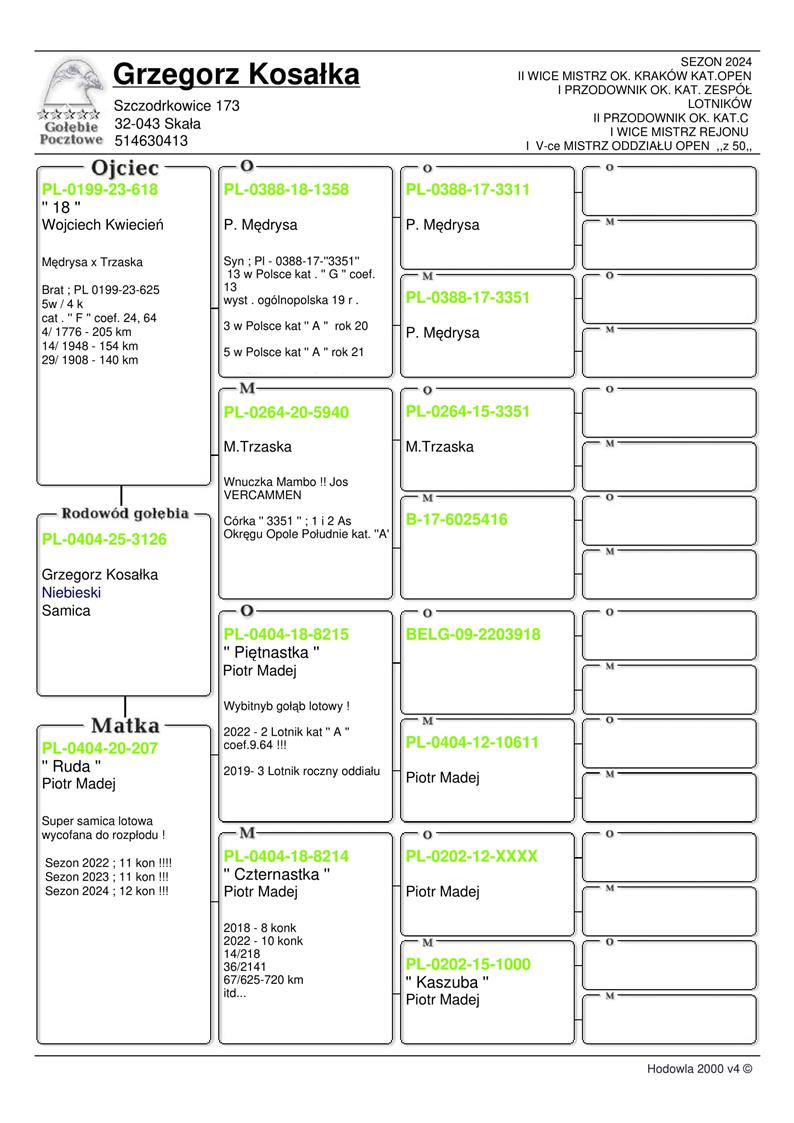 Hodowla z Oddziału 0404 Skała Sezon 2025: II v-ce Mistrz Oddziału - Open Dorosłe (z całości) I v-ce Mistrz Oddziału - kat. A I v-ce Mistrz Oddziału - kat. B 9 Dorosłych Lotników z minimum 9…