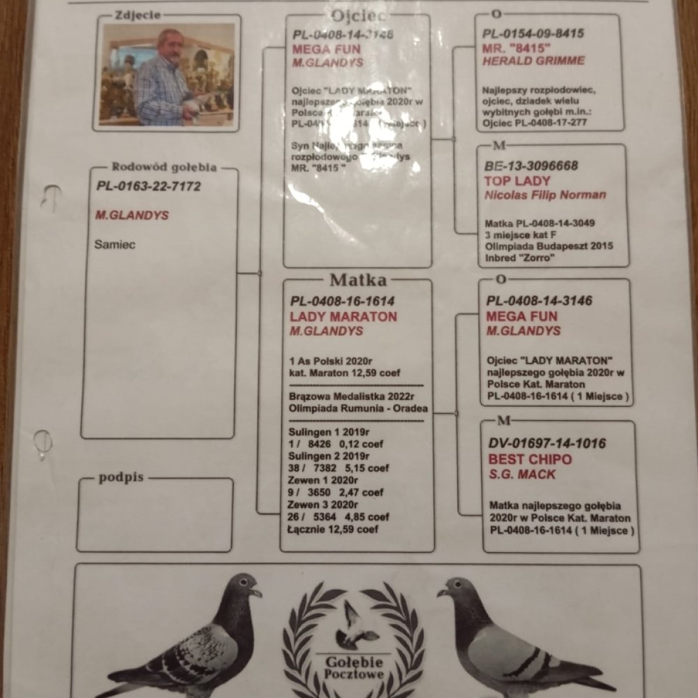 WNUCZKA OLIMPIJKI ‘1614’ ORG. MIECZYSŁAW GLANDYS → 1 AS POLSKI 2020 KAT. SPORT E (MARATON) - 12,59 COEFF. / BRĄZOWY MEDAL OLIMPIJSKI ORADEA 2022 / M.IN.: 1/ 8426SZT - SULINGEN 0,12 COEFF. | CÓRKA SAMICY ROZPŁODOWEJ “7172” - INBRED “3146” MIECZYSŁAW GLANDYS X JEGO CÓRKA OLIMPIJKA KAT. MARATON “1614” !! | CÓRKA ROZPŁODOWCA “2040” - WNUK HURRICAN 51 / INBRED “6521648” (OJCIEC HURRICAN 51 / HURRICAN 34) !!