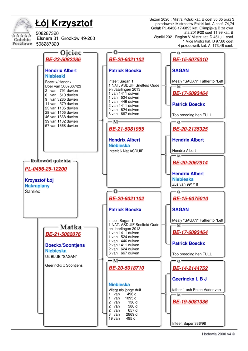 Hodowla z Oddziału 0436 Grodków II. Hodowla, która od wielu lat osiąga bardzo dobre wyniki, szczególnie na krótkim i średnim dystansie. Mistrz Polski w kategorii B w sezonie 2020! Najlepszy gołąb Polski…