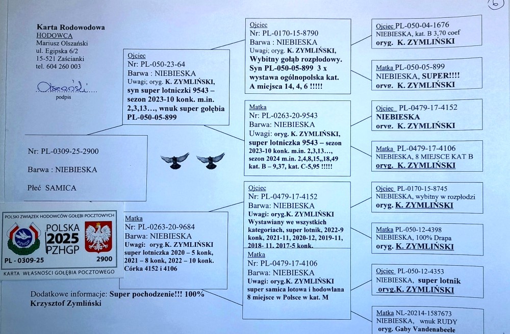 100% KRZYSZTOF ZYMLIŃSKI | CÓRKA SUPER LOTNICZKI “9684” - SEZON 2022 (10KONK.) / SEZON 2021 (8KONK.) | WNUK WYBITNEGO ROZPŁODOWCA “8790” (SYN 899 !!) | WNUK WSPANIAŁEJ LOTNICZKI “9543” → M.IN.: 2, 2, 3, 4, 8, 13, 15, 18.. / KAT. C - 5,95 COEFF. | WNUK SUPER LOTNICZKI “4106” - 8 AS POLSKI KAT. SPORT E - MARATON | WNUK ASA LOTOWEGO I ROZPŁODOWEGO “4152” - 54KONK W 5 LAT! | INBRED “4152” → CÓRKA X WNUK !