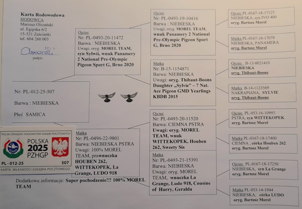 100% MOREL TEAM | CÓRKA SAMCA ROZPŁODOWEGO “11472” ORG. MOREL TEAM - WNUK WSPANIAŁEJ LOTNICZKI “PANAMERA” - 2 AS POLSKI KAT. SPORT G !! | CÓRKA SAMICY ROZPŁODOWEJ “10940” → WNUCZKA “CHICAGO” (OSTATNI SYN WYBITNEGO ROZPŁODOWCA ‘HOUBEN 262’ !!) | WNUCZKA SAMCA ROZPŁODOWEGO “4850” ORG. DARIUSZ BONCZE …