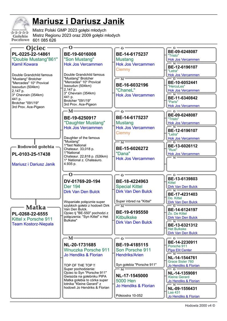 MŁODY LOTNIK 17438 | SYN SAMCA ROZPŁODOWEGO “14861” - 100% HOK & JOS VERCAMMEN - MOCNY INBRED SŁYNNEGO “MUSTANG” - PAROWANIE SYN X CÓRKA !! | SYN SAMICY ROZPŁODOWEJ “6555” ORG. TEAM KOSTORZ & NIEPALA (KITTEL X PORSCHE 911) | WNUK SAMICY ROZPŁODOWEJ “685” ORG. JO & FLORIAN HENDRIKS - WNUCZKA “PORSCHE 911” ORAZ “KLEINE GERARD” !! | WNUK SAMCA “DER 194” DIRK VAN DEN BULCK (WNUK “KITTEL”)