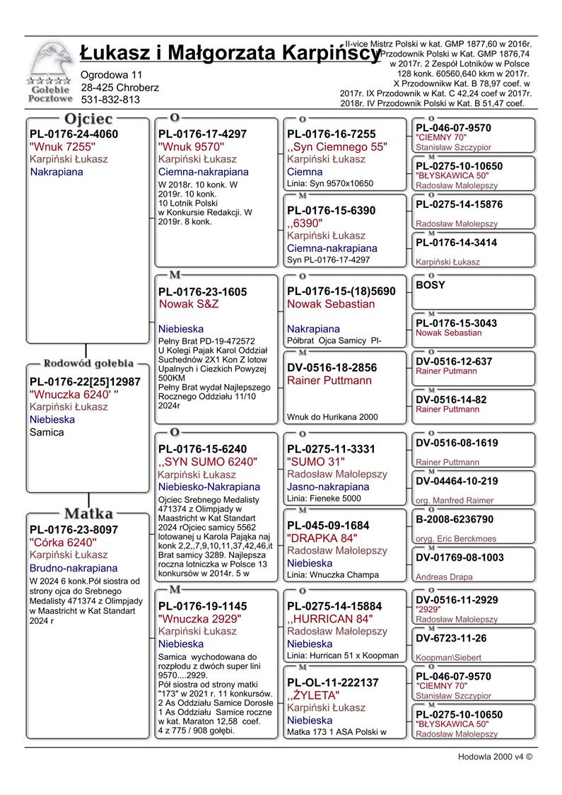 Hodowla z Oddziału 0176 PińczówNa aktualnej aukcji znajdują się wyłącznie dzieci LOTNIKÓW! Hodowla oparta jest na dwóch BAZOWYCH parach rozpłodowych: Para nr 1 - “CIEMNY 9570 x HURRICANKA 10650” Para…