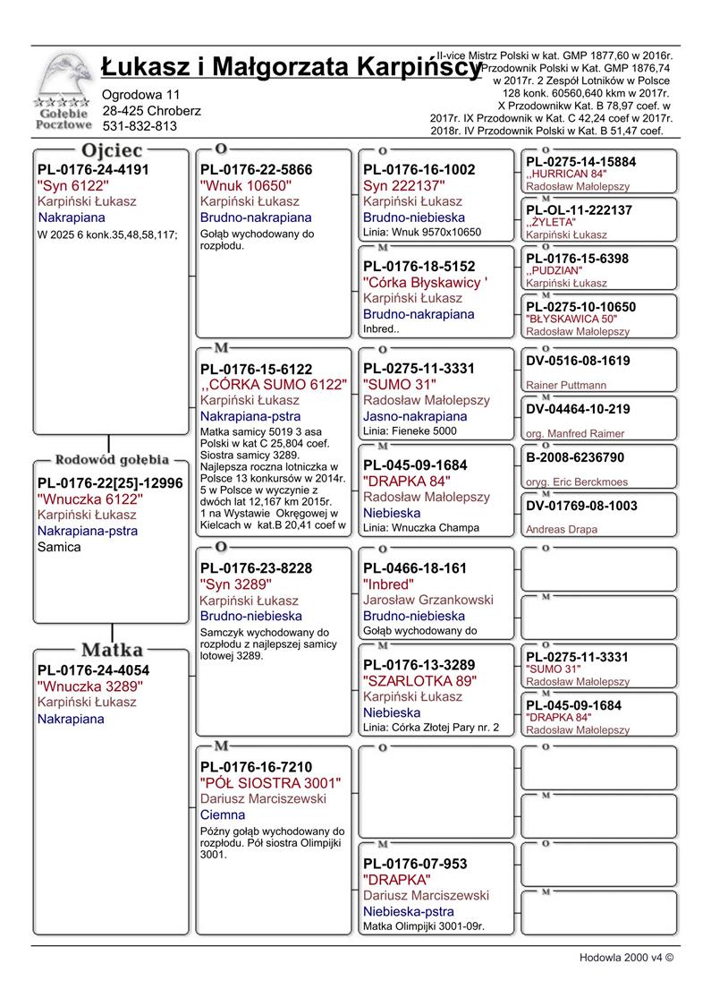 SYN SUPER LOTNICZKI 8096 → 3 AS ROCZNA LOTNICZKA ODDZIAŁU PIŃCZÓW 2024 (8 KONK) / W SEZONIE 2025 ZDOBYŁA 9 KONK. → WYWODZI SIĘ Z DWÓCH BAZOWYCH PAR HODOWLI / JEST WNUCZKĄ PARY NR 2 (SUMO 3331 X DRAPKA 1684) !! | SYN SAMCZYKA 4028 → W SEZONIE 2025 JAKO ROCZNY M.IN.: 5/ 2573 SZT - 238KM !! / 42/ 275 …